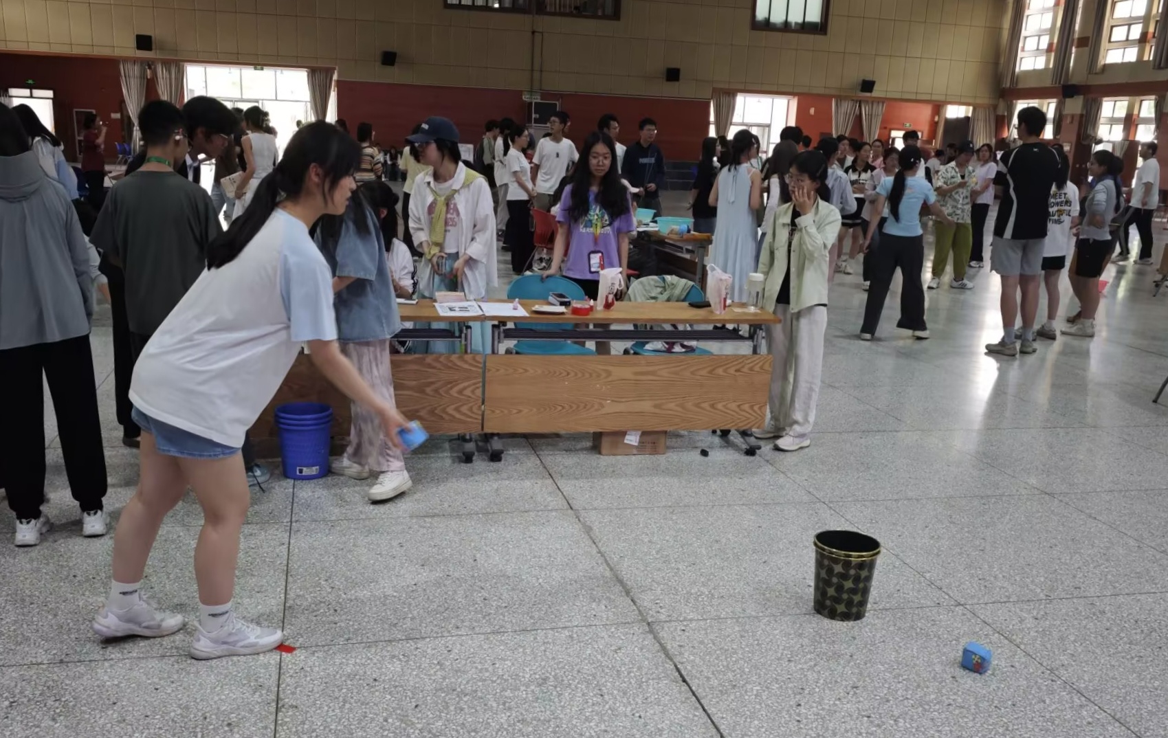 "在这个五月,让我们用运动点燃激情,用欢笑书写青春!"活动在青春洋溢的开场舞中拉开帷幕。侯江老师表示:“希望大家在运动中感受团队的力量,享受竞技的乐趣,展现青春的活力。"本次运动会创新活动形式,设置了15个兼具趣味性与竞技性的项目,包括团队赛“趣味拔河”“夹乒乓球接力”和个人赛“纸飞机大赛”“转圈射门”等。 在“背靠背夹球跑”项目中,队员们默契配合,步伐一致;而“指东看西”游戏则考验反应速度,现场笑声不断。活动特别设计了“抽奖答题”环节,将脑筋急转弯与学科知识结合,寓教于乐。